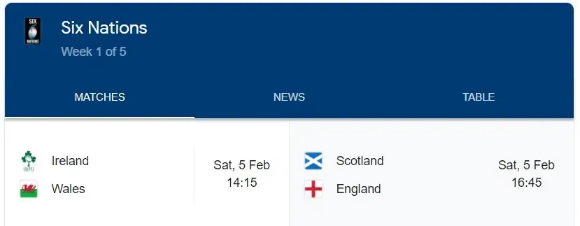 Including SCOTLAND V ENGLAND at 4.45 pm