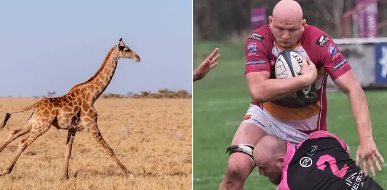 But it was his comment a little later that made us smile: “The second try for the away side came minutes later when gigantic lock Oliver Parkinson, on the charge like a mad giraffe, finished off from the back of a 13-man maul …”