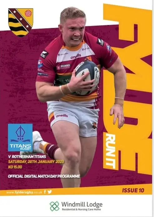 Issue 10 of our Digital match programmes for 2022-23 is now available ahead of the Fylde v Rotherham Titans National Two (North) fixture at the Woodlands on Saturday, 28th January (ko 15.00). Fylde lead the division and they will be hoping to retain their 100% home record in what will be a very tough game in front of what we hope will be a large and enthusiastic crowd from the Fylde Coast and beyond.
