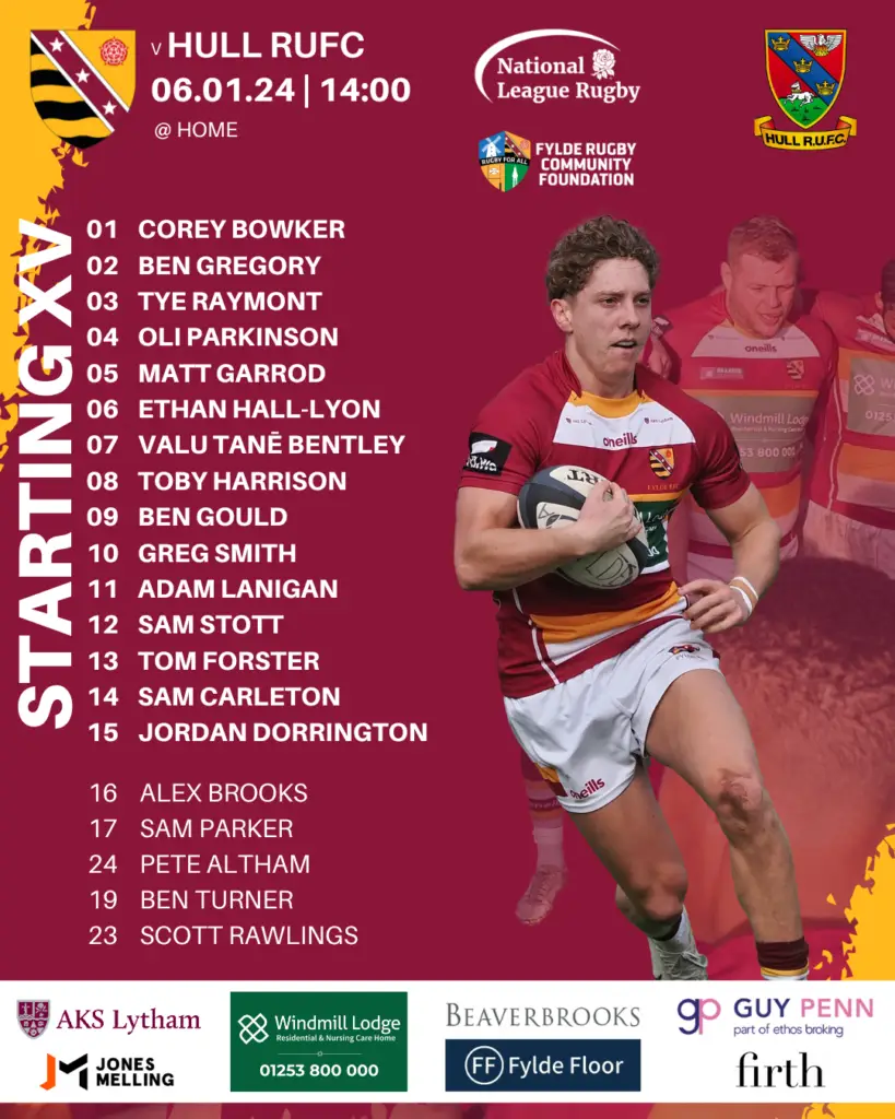 Fylde make three changes in their starting line-up for the visit of Hull RUFC to the Woodlands on Saturday – note the early kick off at 2pm.