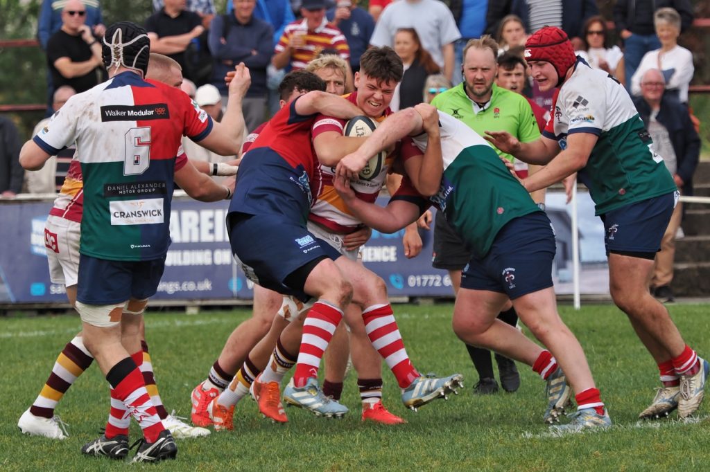 It was the turn of the visitors to press the Fylde defence thereafter. Once again, a series of penalties were conceded as the Ionians forwards drove for the line time and again. In the 67th minute the referee’s patience ran out and he awarded a penalty try and sinbinned Fylde replacement prop Chris Rudkin. Ionians had the lead for the first time in the match at 19-22.