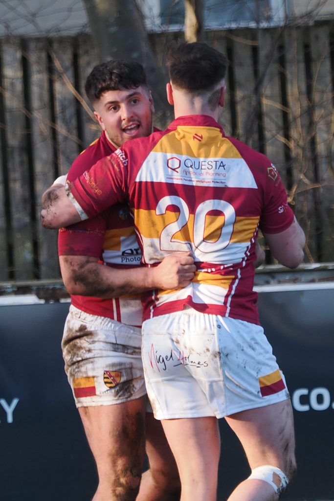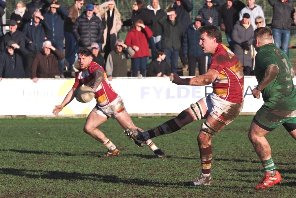 Wharfedale did begin to grow back into the game after this however and their trademark lineout maul brought them inches from the Fylde try line. The home side’s last-ditch defence was superb and the maul was halted in the 24th minute, which required Wharfedale to play it out. But what resulted was the worst case scenario for the away team. A predictable pass 5m out from the Fylde try line was read like a book by winger by Leo Gilliland who intercepted and he raced off down the length of the pitch away from forlorn Wharfedale defenders who one by one gave up the chase. Gilliland touched down in front of an ecstatic, large crowd in front of the Clubhouse.